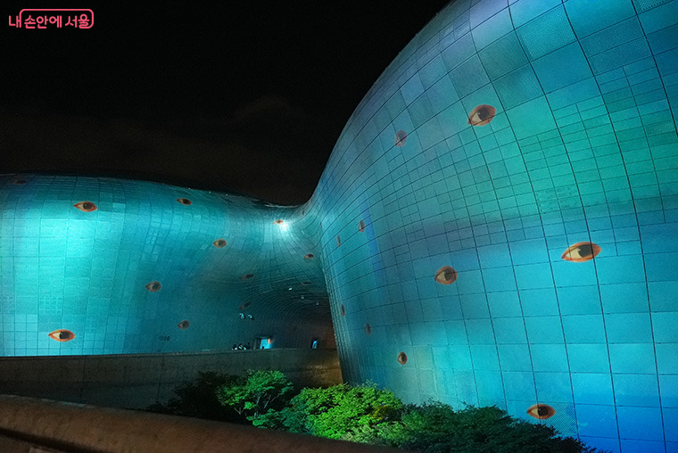 로랑 그라소의 또 다른 작품 파노프테스는 이번에 처음 선보이는 신작으로 그리스 신화 속 아르고스 파노프테스에서 영감을 얻은 대형 디지털 애니메이션으로, DDP의 파사드 위에 수많은 눈을 투사해 신비로운 장관을 펼친다.