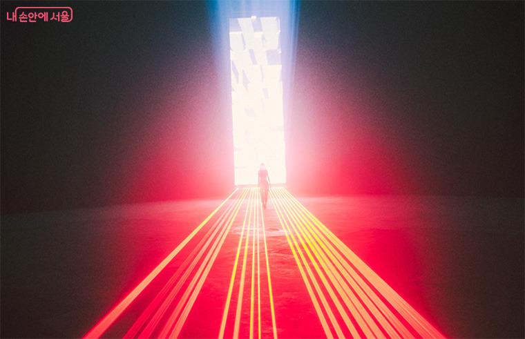 아카 창의 Multimmersion_DDP25(멀티멀젼_디디피25)은 레이저 인스톨레이션 작품으로, 빛과 공간을 매개로 신체와 환경의 관계를 탐구한다. 수평의 빛줄기가 연기와 바람에 반응하며 건축과 어우러지는 이 작품은, 관람객이 직접 걸어 들어가며 체험하는 ‘빛의 구조’를 구현한다.