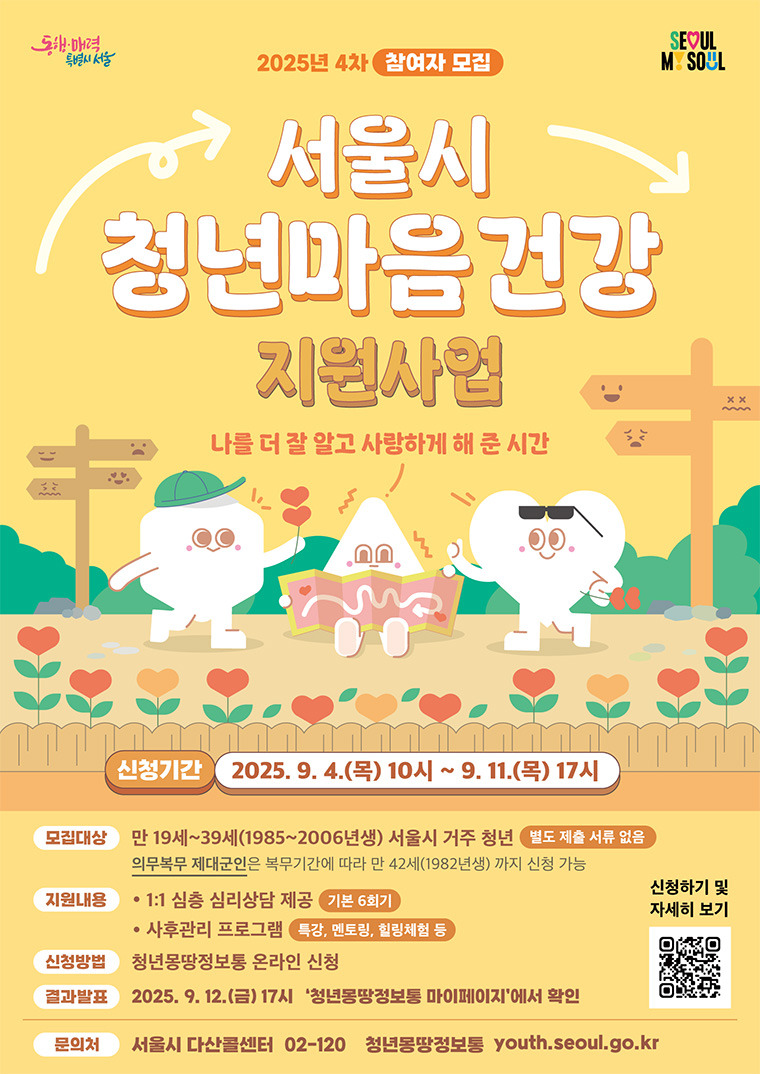 ‘2025 서울 청년 마음건강 지원사업’ 참여자 모집(4차)