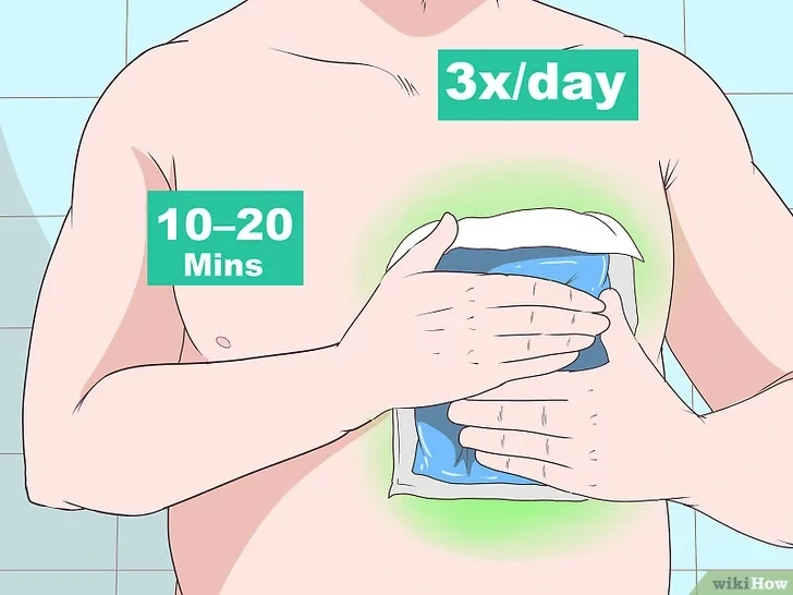 부상 후 처음 이틀 간은 일어나 있는 동안에 1시간마다 20분 정도 얼음 주머니나 냉각 젤 주머니 또는 얼린 콩을 채운 주머니를 갈비뼈 손상 부위에 댄다. 그 뒤 통증과 부기가 가라앉으면 하루 3회 10-20분 정도로 줄인다. 얼음은 혈관을 수축시키고 염증을 억제하며 주위의 신경을 마비시킨다. 냉각 요법은 어떤 종류의 갈비뼈 골절에도 적합하며 거의 모든 근골격계 상처에 효과가 있다.