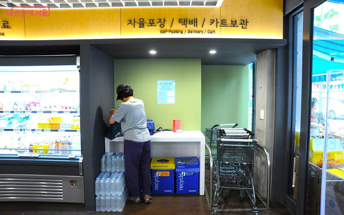 작은 공간이지만 자율 포장, 택배 신청, 카트 보관 장소도 마련됐다. ⓒ조수봉