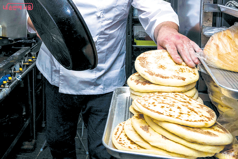 ‘노스티모’에서 직접 만든 피타 빵