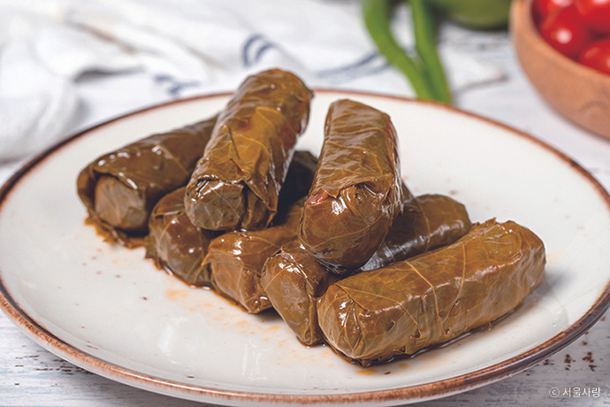 포도잎에 밥과 고기, 양념을 올리고 돌돌 말아서 찐 요리. 그리스의 대표적 전채 요리로, 레몬 소스를 얹어 먹으면 신선하고 상큼한 맛을 느낄 수 있다. 고기를 사용하지 않는 버전도 있어 채식주의자도 즐길 수 있다.