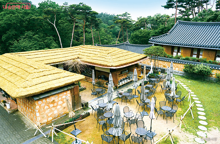 은평한옥마을 언덕에 자리한 인기 카페. 이름에는 ‘일행마다 음료 한 잔씩은 주문해주세요’라는 재치 있는 뜻이 담겨 있다. 5층짜리 한옥 건물 전체를 카페로 운영하는데, 위로 올라갈수록 전망이 탁 트여 북한산과 한옥 지붕들이 어우러진 풍경을 한눈에 담을 수 있다. 5층 다락에 앉아 통창 너머로 그림처럼 펼쳐지는 한옥마을 전경과 계절마다 다른 색으로 물드는 북한산 자락을 바라보며 커피 한잔 음미하다 보면 시간 가는 줄 모른다.