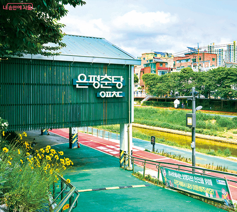 불광천을 따라 걷다 보면 특이한 이름의 공간 하나를 발견할 수 있다. 바로 65세 이상 어르신들의 휴식처인 ‘은평춘당’이다. 건물명인 ‘춘당’에는 봄처럼 따뜻하고 활기찬 노년을 보내시라는 뜻이 담겨 있다. 실내에는 바둑판이 놓인 테이블과 편안한 소파가 마련돼 있고, 곳곳에 신문과 책자도 비치돼 있다. 어르신들이 담소를 나누며 머리를 식히는 모습이 정겹다.