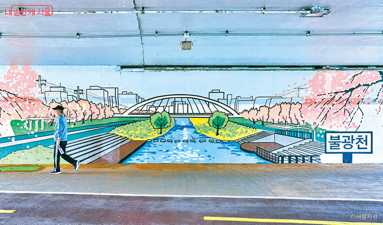 불광천 산책로에는 다양한 벽화와 예술 작품이 설치돼 있어 산책하는 이들에게 볼거리를 제공한다. 교각 아래에는 형형색색의 벽화가 그려져 있으며, 응암역 부근 산책로에도 과거 은평구의 모습과 현재를 담은 벽화가 있어 발걸음을 멈추고 구경하게 된다. 아이들과 함께라면 동화 속 캐릭터나 동물들이 그려진 구간에서 사진을 찍으며 추억을 만들 수도 있다.