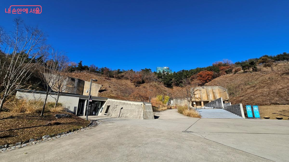하늘공원을 지나면 ‘문화비축기지’ 안으로 들어간다. 매봉산자락 중턱 듬성듬성 놓인 독특한 구조물, 1970년부터 2000년까지 석유를 비축하던 거대한 탱크들이다. 옛 석유비축기지의 6개 거대한 탱크(T1~T6)를 2017년 리모델링하여 독특한 문화 공간으로 변신했다. 다양한 문화 예술 공연이 연중 펼쳐지므로 누리집을 통해 프로그램을 확인하길 추천한다. 서울의 새로운 랜드마크로 자리매김 중이다.