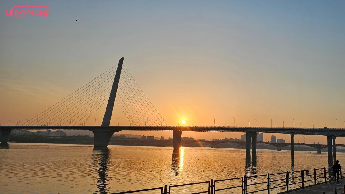 가양대교에서 월드컵대교를 바라보며 일출을 맞다. ©최용수