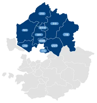 인구 100만 명 이상의 주요 도시로는 고양시가 있으며, 인구 50만 명 이상의 도시로는 남양주시 파주시가 있고, 의정부시가 47만 명으로 그 뒤를 따르고 있다.