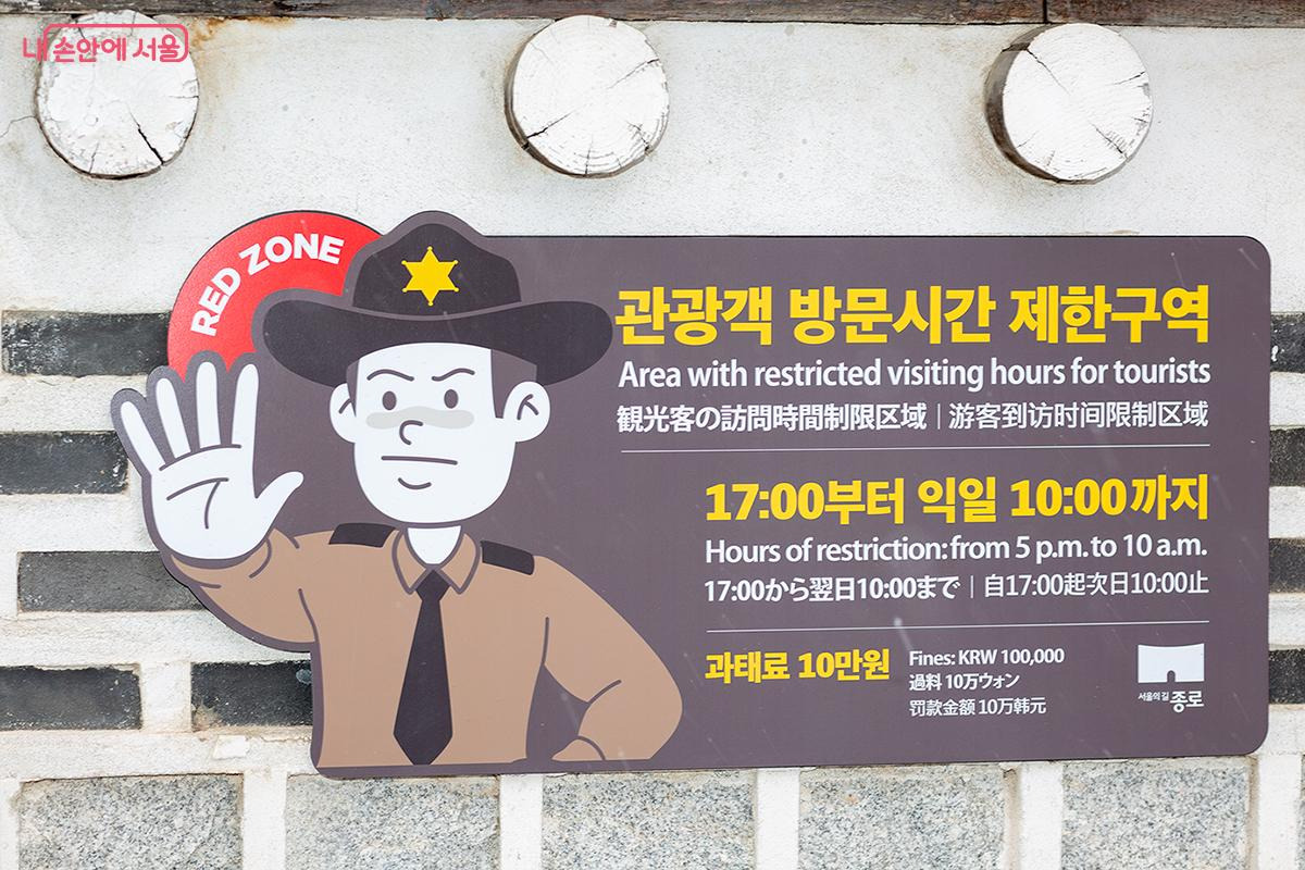북촌 특별관리지역에는 오후 5시부터 다음 날 오전 10시까지 관광객 통행이 제한된다.