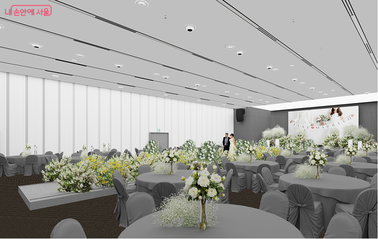‘더 아름다운 결혼식’ 사업의 대표 거점시설인 공공웨딩홀 ‘피움서울’이 7월 개관한다. 예식장 내부 예상도.