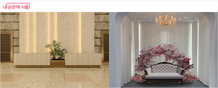로비도 리모델링을 통해 넓고 고급스러운 리셉션 공간으로 변신했으며, 신부대기실과 VIP대기실도 마련된다. 케이터링이 가능한 준비 공간도 갖춰 예비부부가 원하는 다양한 방식의 실속형 예식을 진행할 수 있다.