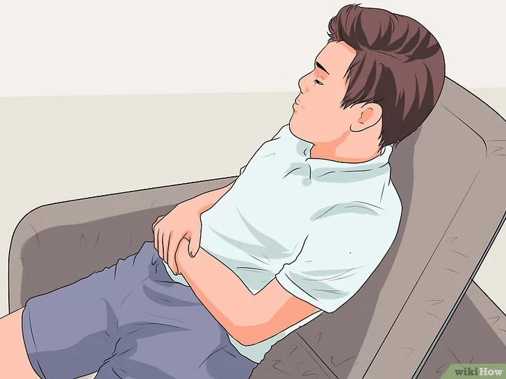 소파에 베개를 놓아두고 기대어서 앉아보자. 많이 움직이거나 평평한 표면에 누우면 증상이 더 악화될 수 있다.