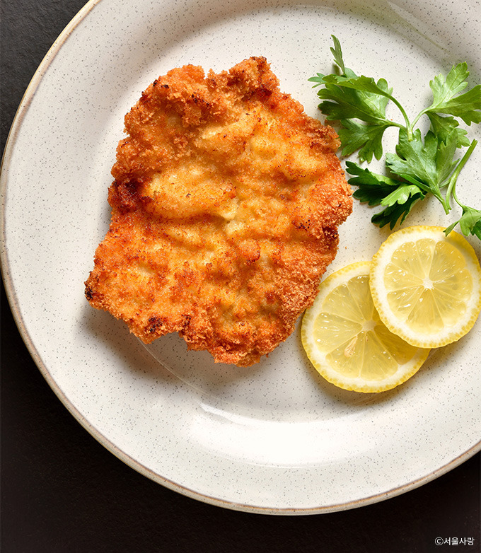 얇게 저민 고기에 빵가루를 입혀 바삭하게 튀긴 독일식 커틀릿이다. 겉은 고소하고 속은 부드러워 누구나 즐기기 좋고, 감자 요리나 레몬 슬라이스를 곁들이면 풍미가 한층 살아난다.