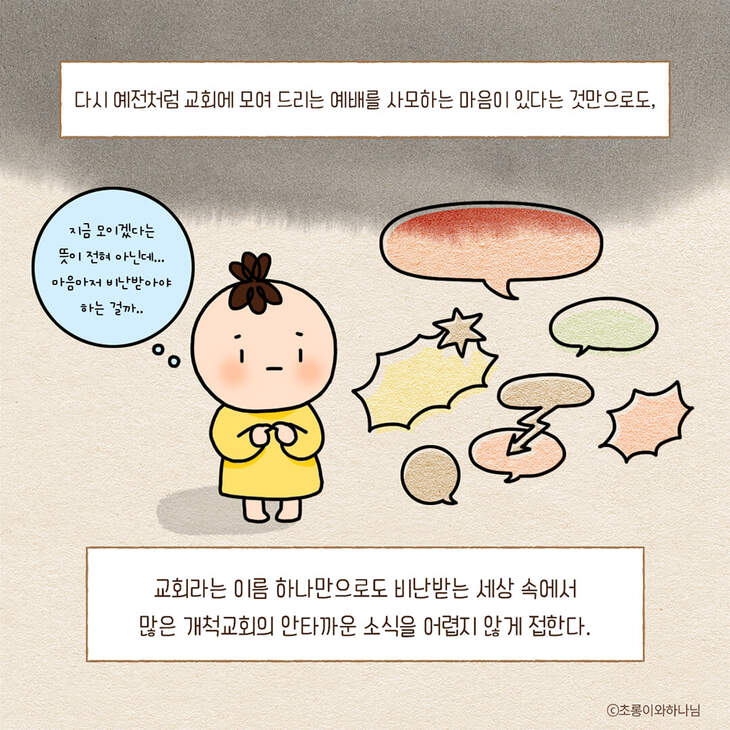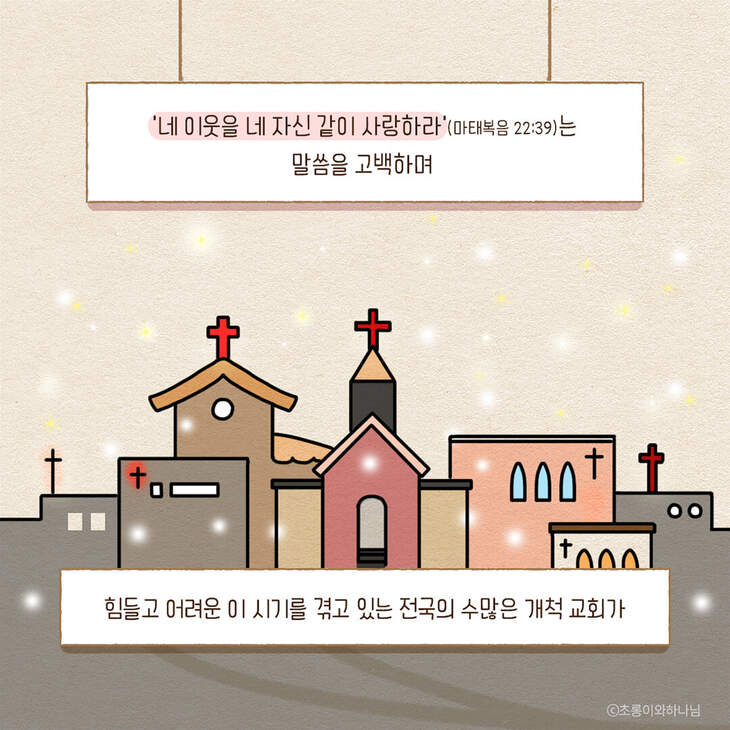 여전히 어려운 가운데서 복음을 위해 묵묵히 헌신하시는 개척교회 목회자분들과 성도들을 위해 함께 기도하고 마음을 모았으면 좋겠습니다.