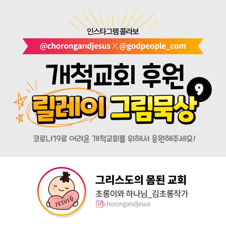 갓피플은 코로나로 어려운 개척교회 목회자를 돕기 위해 2020년 11월 25일 부터 2021년 8월 3일까지 개척교회 후원 릴레이 그림묵상을 진행하였습니다.