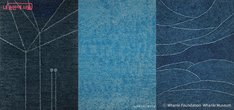 <Duet 22-IV-74 #331>(1974), <17-IV-71 #201>(어디서 무엇이 되어 만나랴 연작, 1971), <16-IX-73 #318>(1973) (왼쪽부터, 사진제공:(재)환기재단·환기미술관)