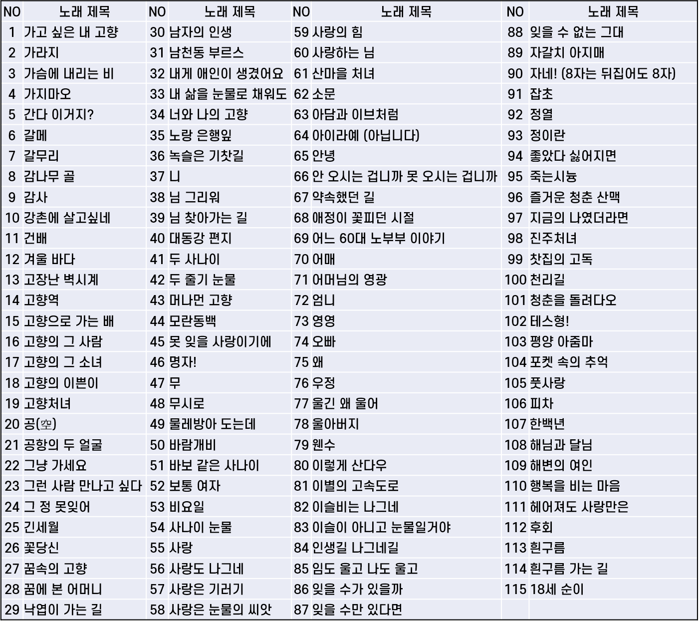 나훈아 인기, 대뷔곡, 라스트콘서트 공연일정