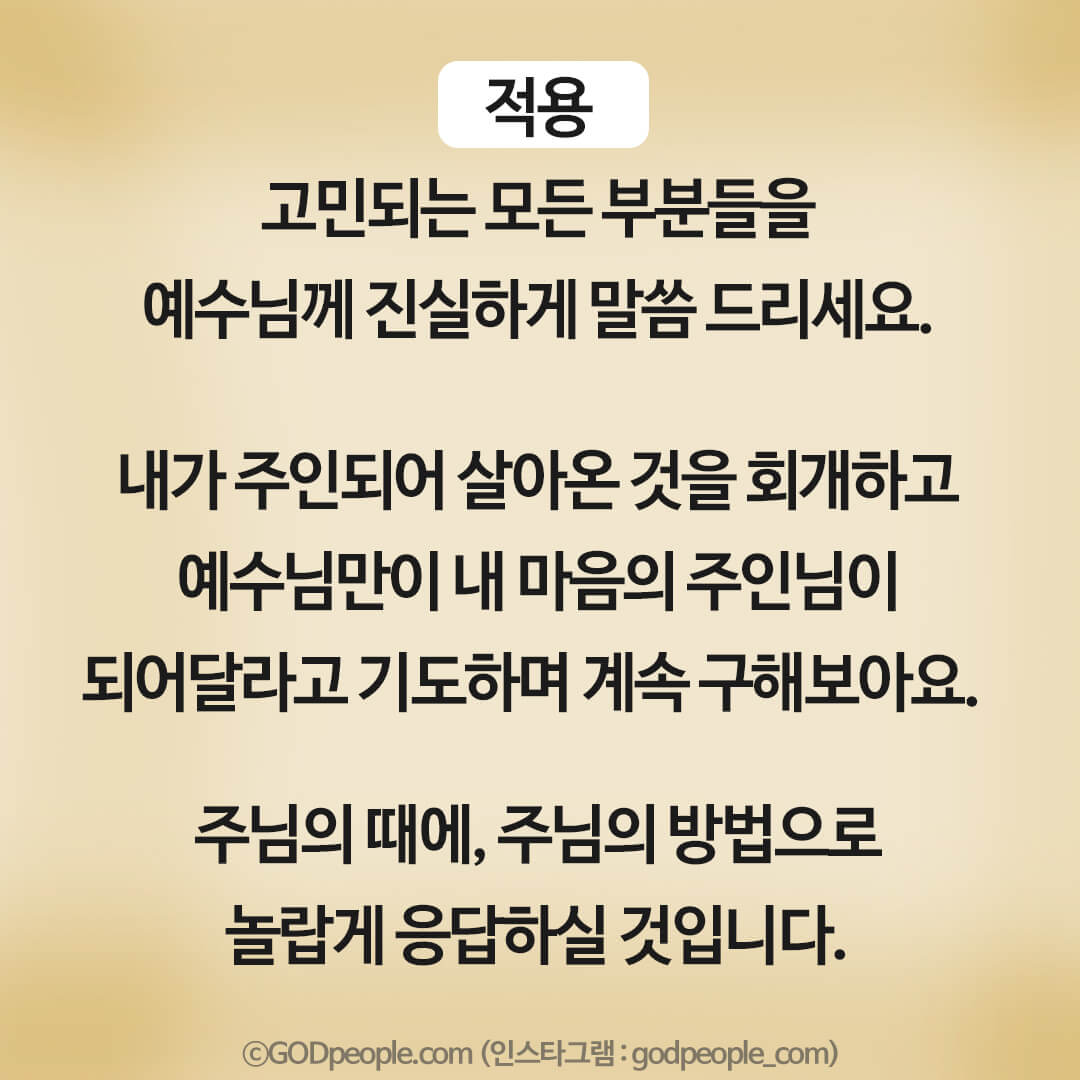 하나님은 말 그대로 우리의 낡은 습관과 콤플렉스, 불순한 생각을 없애고
