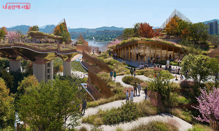 특히 동-서를 연결하는 ‘공중보행로’에는 전시 공간과 전망대를 조성하고, 동쪽 숲은 낙엽활엽수의 다층 구조의 숲으로 조성하여 생물 다양성이 살아 숨 쉬는 공간으로 탈바꿈시킨다.