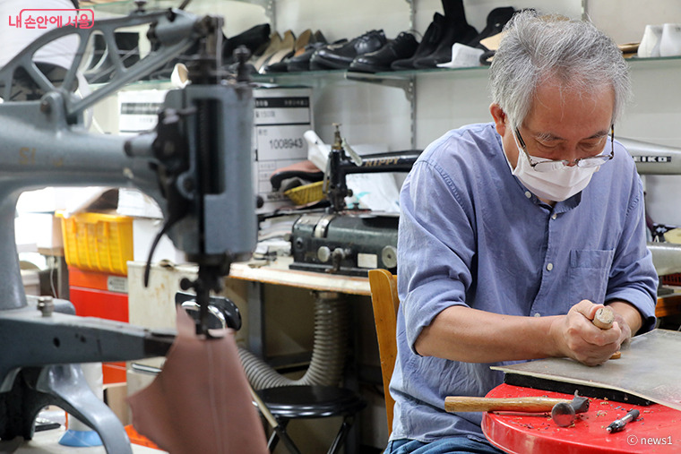 서울 성동구 성수동에서 수제화를 만드는 장인의 모습