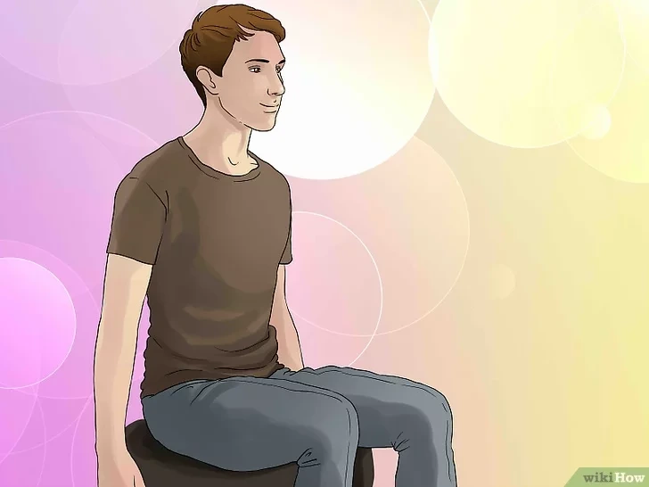 의자에 허리를 곧게편 상태로 앉는다