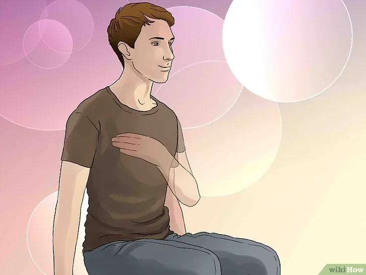 숨을 들여마시며 손가락을 가슴에 갖다댄다
