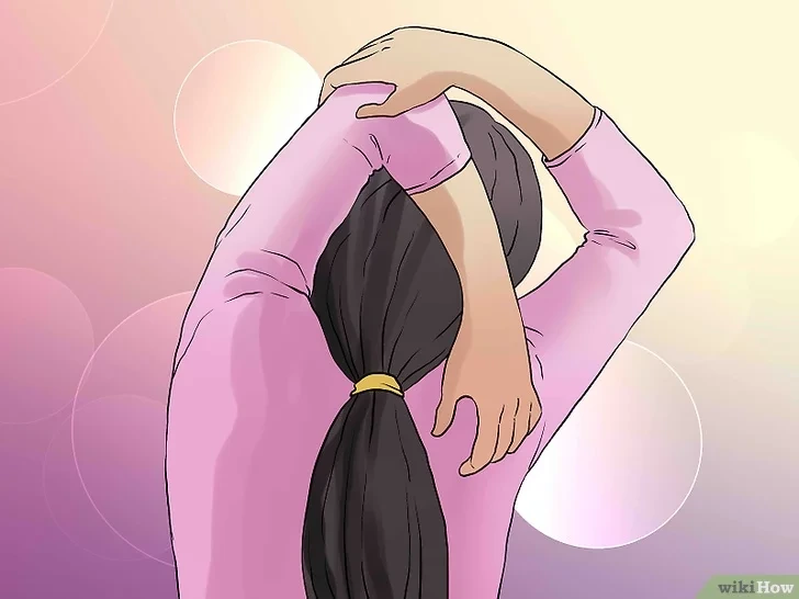 등에있는 팔꿈치를 만지는 것처럼 하면된다. 등 근육이 스트레칭 되면서 가슴은 자연스럽게 펴질것이다
