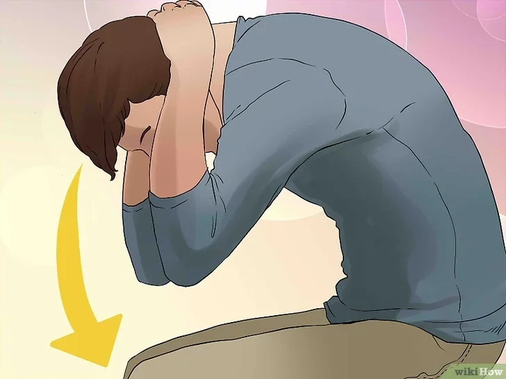 허리를 곧게 펴고 양손은 머리뒤로 놓는다. 척추를 앞으로 굽히고 고개는 숙인다. 양 팔꿈치가 허벅지에 닿을정도로 굽힌다. 위 자세를 10 초간 유지한다. 5 회 반복