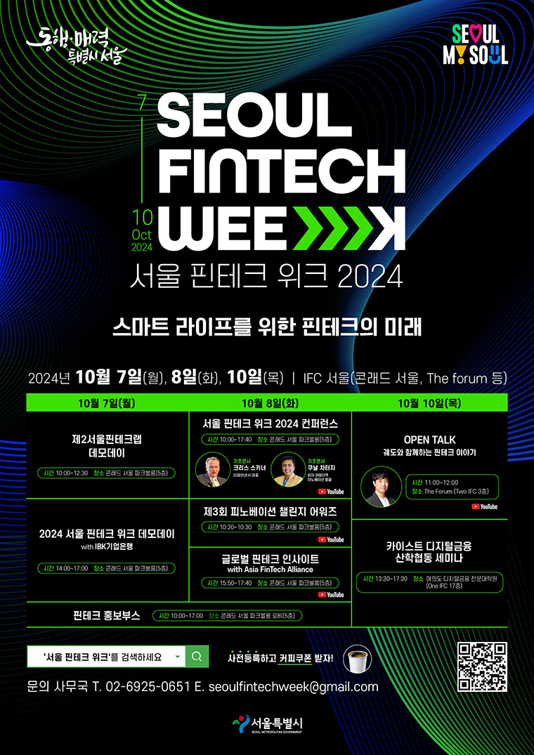 한편, 서울시는 핀테크 기업의 성장을 지원하고, 국제적인 네트워킹을 확장하기 위해 오는 10월 7일부터 10일까지 핀테크 산업 글로벌 축제인 ‘서울 핀테크 위크 2024’를 개최한다.