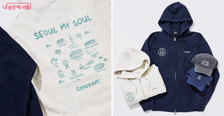 특히, 후드집업은 서울 랜드마크 그래픽을 활용한 와펜과 프린팅으로 서울의 매력적인 모습을 나타냈으며, 모자는 서울 브랜드 ‘서울마이소울’을 자수 기법과 원색 포인트로 적절히 매치해 상품을 개발했다.