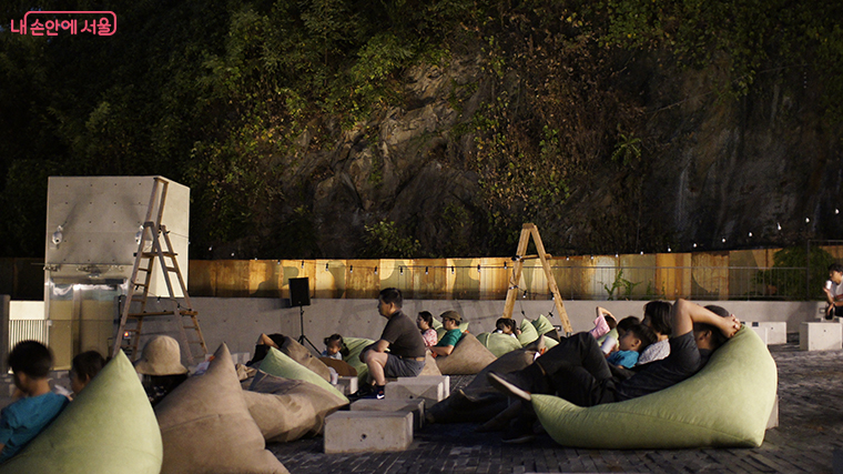 ‘탱크박스 산속 영화관’에서 영화를 관람하고 있는 시민들
