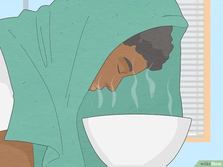 큰 그릇에 끓는 물을 채우고 그 위에 기대어 수건을 머리에 두르고 증기를 쐔다. 10~15분 동안 증기를 들이마시면 기침이 멎는 데 도움이 된다. 물이 식기 시작하면 그릇에 끓는 물을 조금 붓습니다