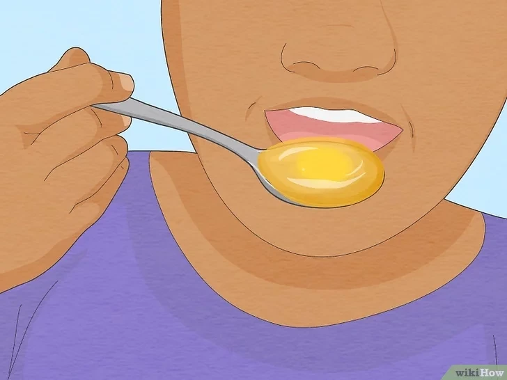 꿀 1 tsp (4.9 mL)을 부어 생으로 먹거나 차 또는 따뜻한 물에 저어서 먹는다. 꿀에는 당이 함유되어 있으므로 하루에 4–5 tsp (20–25 mL) 만큼만 섭취한다.