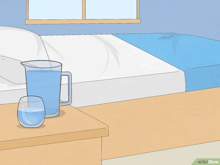 침대 옆 탁자에 물 한 잔을 둔다