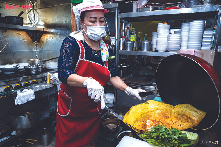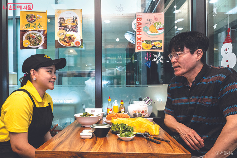 “호찌민에서 4시간 떨어진 남부 출신입니다. 아이가 둘 있고, 남편도 있어요.(웃음)” 베트남 식당 특유의 냄새가 가게에 가득하다. 베트남은 향초와 스파이스를 잘 사용하고, 볶음과 튀김 요리도 많다. “우리 가게는 여러 가지 쌀국수가 유명해요. 보통 한국인 손님들이 좋아하는 식으로 만들기도 하고, 고향식도 선보이고 있어요.”