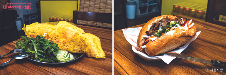 # 베트남 가족이 운영하는 정통 남부식 전문점 ‘포옹싸’ 지하철 3호선 구파발역 근처에 있는 ‘포옹싸’는 베트남 현지인 가족이 운영하는 정통 베트남 남부식 음식점이다. 이곳은 오랜 시간 끓여낸 사골육수에 기반한 쌀국수가 특히 유명하다. 호찌민 스타일의 후띠에우 쌀국수와 바인쌔오가 대표 메뉴. 이곳의 바인쌔오는 쌀가루와 강황 가루로 만든 얇고 바삭한 부침개에 새우, 고기, 숙주가 가득 들어 있다. 쌀국수는 베트남 간장에 다진마늘을 넣은 소스나 테이블에 있는 매운 소스를 곁들여 먹으면 좋다. 베트남 식재료도 판매하고 있어 현지의 분위기가 가득하다. 연유를 넣어 진하게 마시는 베트남 커피 한잔으로 식사를 마무리하면 더욱 좋다.