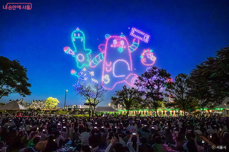 밤하늘을 캔버스 삼아 1,000개의 드론이 그려내는 장관! ‘한강 드론 라이트쇼’