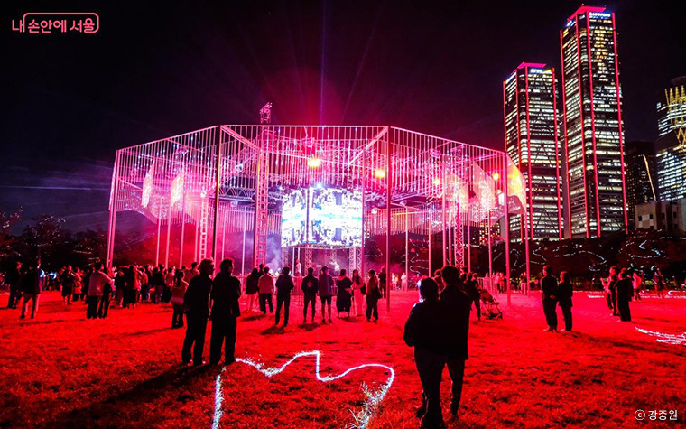 인공 정원의 모습을 보여주는 작품 ‘반짝이는 정원’, 여의도 야경과 어우러져 황홀한 풍경을 이룬다.