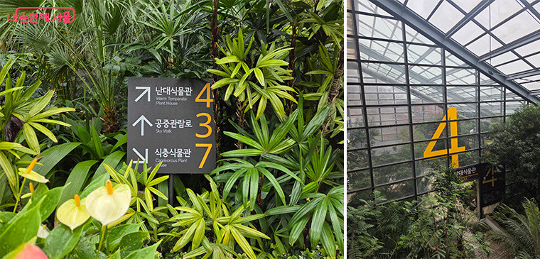 기존에 기후대별로 불리던 전시관 명칭을 ▴선인장관 ▴열대식물관 ▴난대식물관 ▴식충식물관 등 식물의 특성별로 재구성했다. 또한 공간별로 고유번호를 부여하여 숫자만 따라가면 ‘선인장관’부터 시작해 아이들에게 인기 만점인 ‘식충식물관’까지 주요 전시공간을 빠짐없이 관람할 수 있는 숫자형 안내체계를 구축했다.