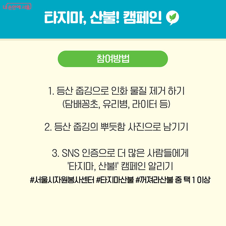 (해시태그 중 하나 이상 포함해 게시 #서울시자원봉사센터 #타지마산불 #꺼져라산불)