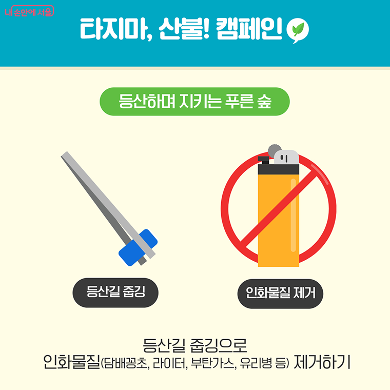 -등산을 하며 자율적으로 인화물질 제거(담배꽁초, 유리병, 라이터 등)