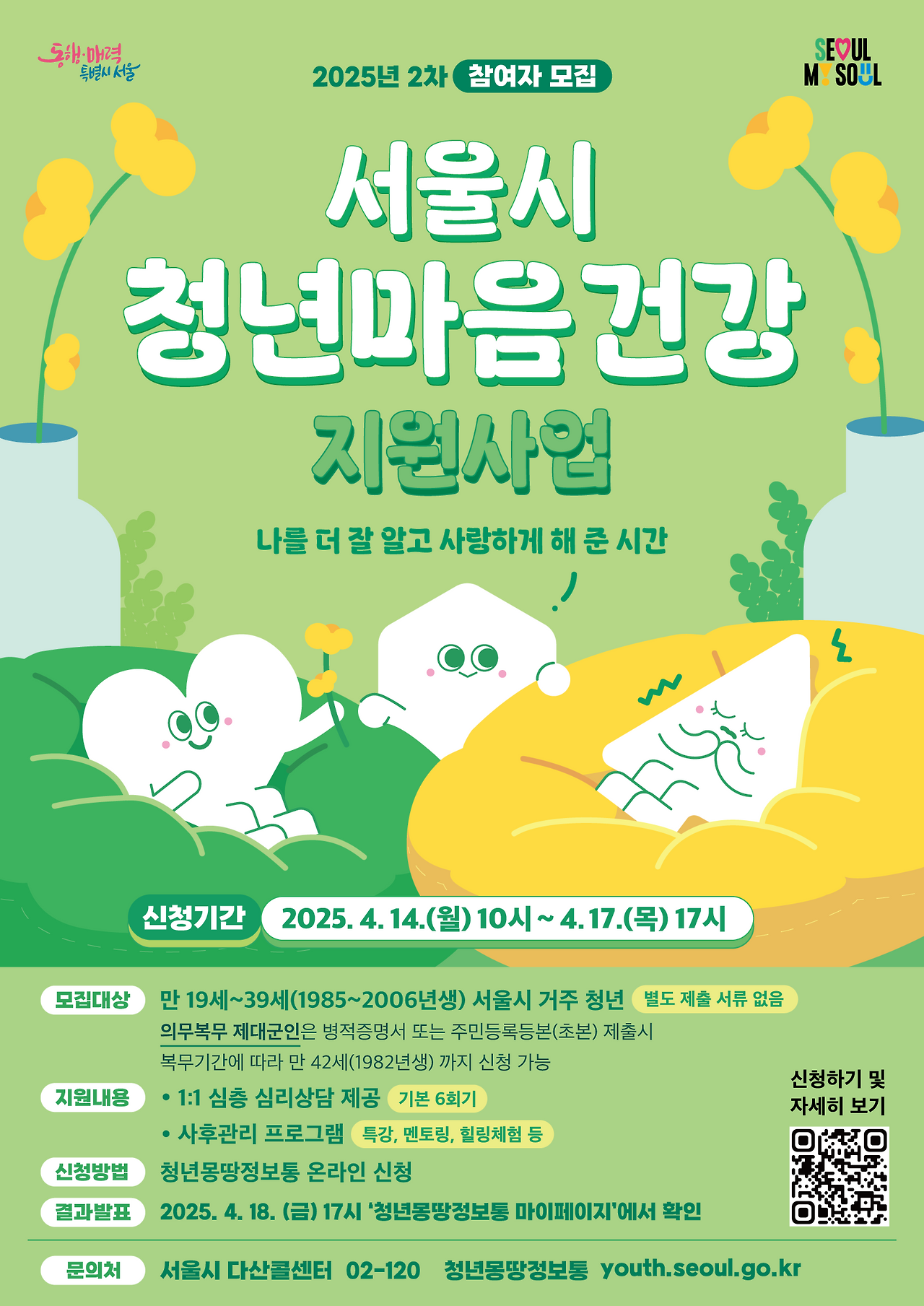 2025년 서울시 청년 마음건강 지원사업 2차 모집 포스터