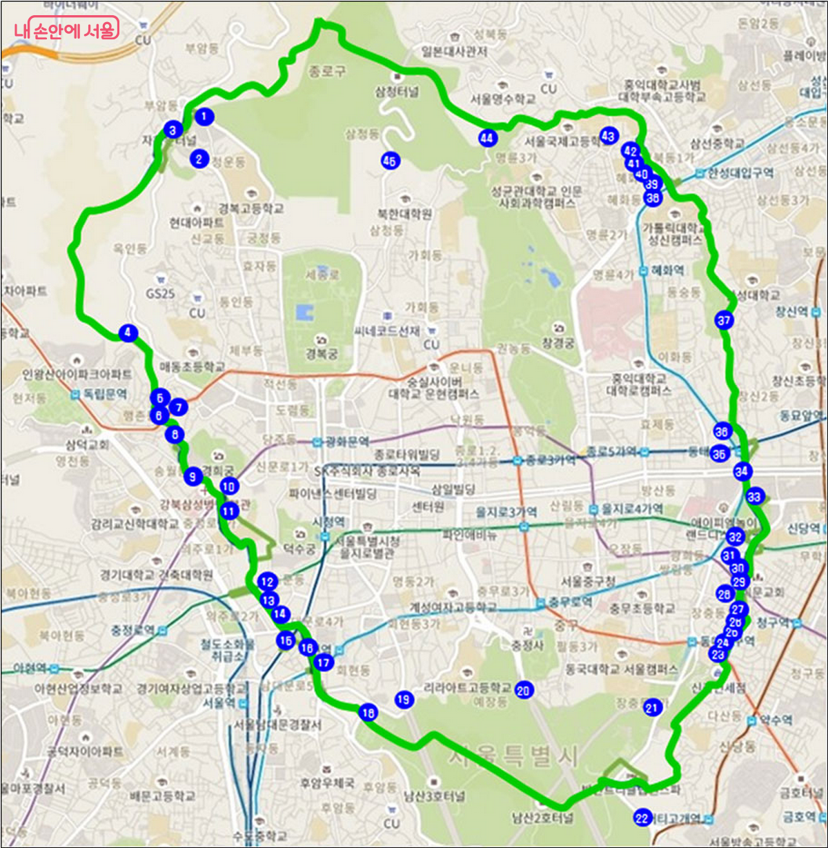한양도성 녹색교통지역 단속카메라 위치 ©서울시