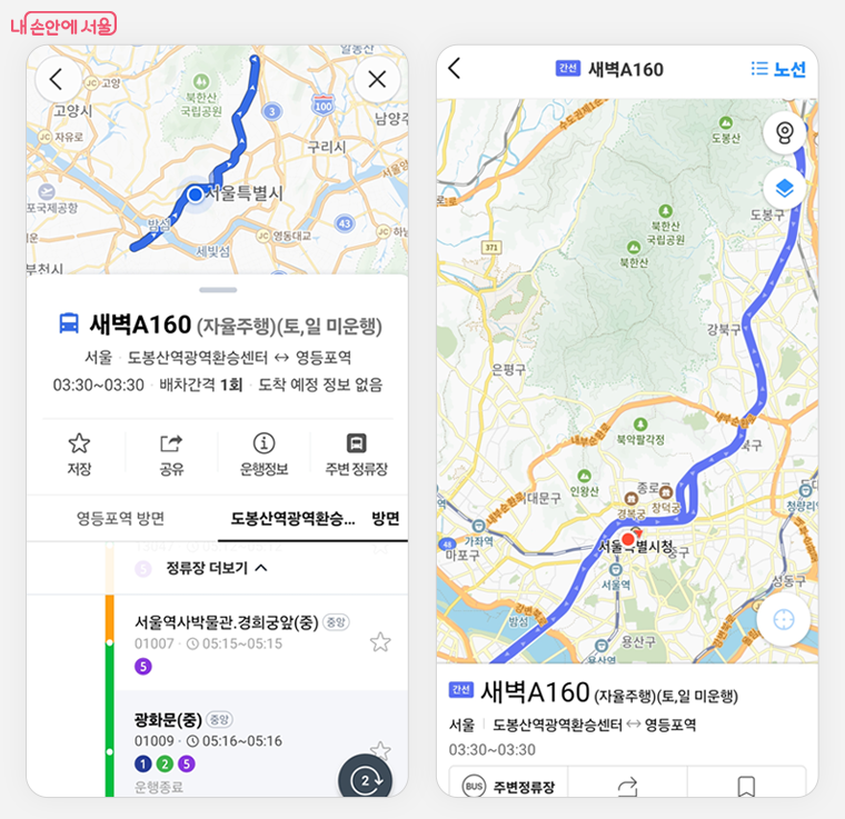 A160, 03시30분 출발...도봉산역환승센터~영등포역 운행