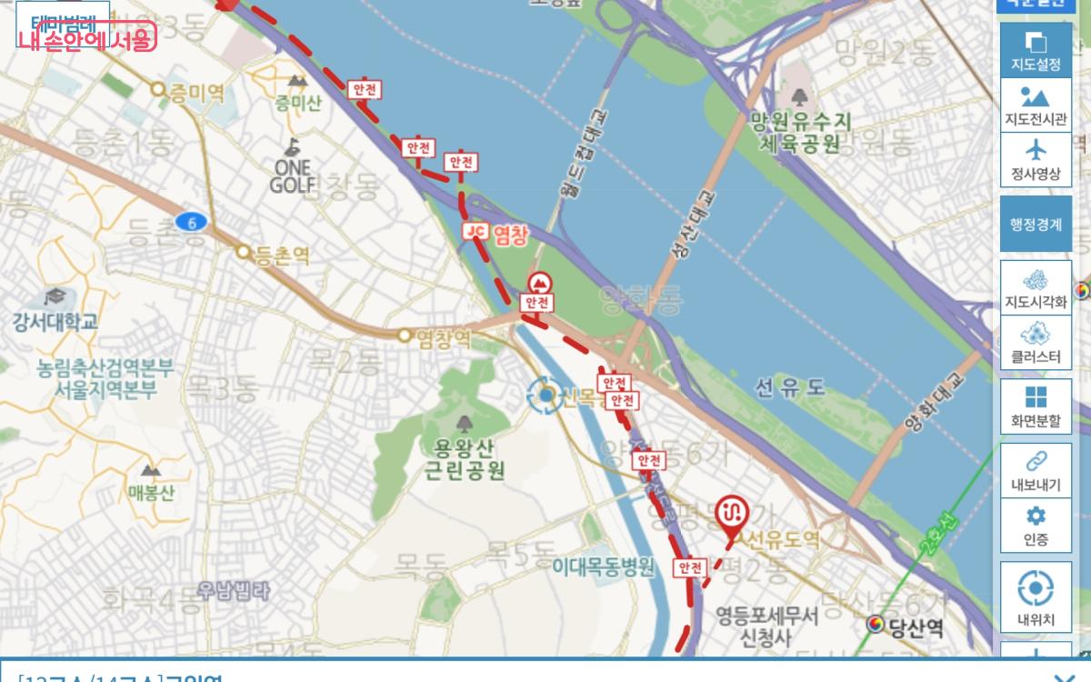 안양천 합수부로 향하던 중 위기가 있었다. 서울둘레길을 알려주던 표지판이 공사 현장에서 없어진 것이다. 순간 당황했지만, 기지를 발휘해 ‘스마트서울맵’ 앱을 켜서 ‘서울둘레길2.0’ 안내를 시작했다. 길을 잘못 들었던 것을 확인하고, 다시 경로를 찾아서 14코스를 안전하게 완주할 수 있었다.