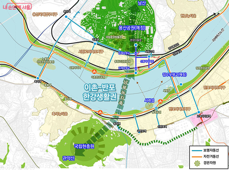 이에 따라, 향후 잠수교가 보행교로 전환되면 한강과 지역, 강북과 강남을 연결하는 녹지·보행체계가 완성되며, 이촌생활권과 반포지구가 하나의 생활권으로 연결될 전망이다.
