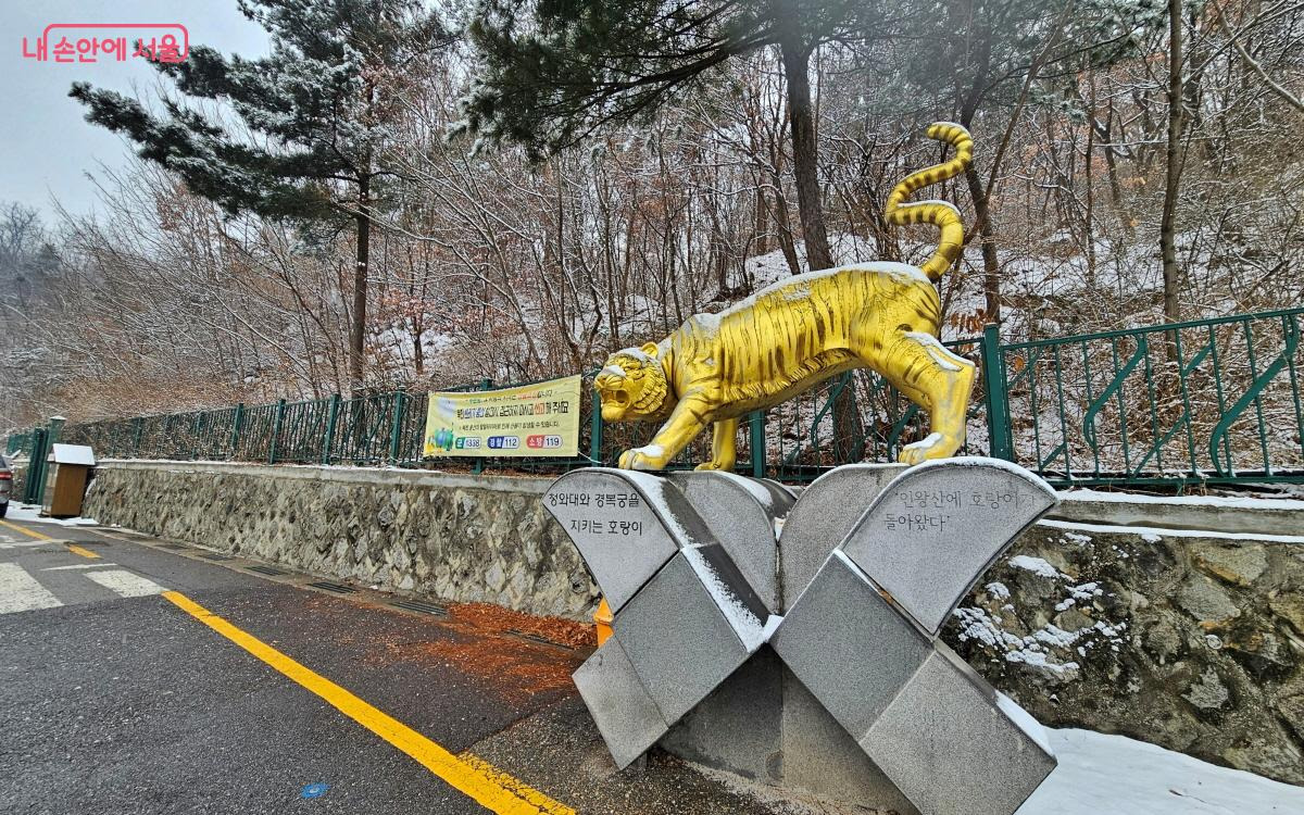내려올 때는 인왕산 호랑이 동상 쪽으로 향해도 좋다. 남산이 마주보이는 성곽을 조망하고 호랑이 동상 앞에 서면 오른쪽은 단군성전과 사직단으로 내려가는 길이다. 길을 건너 직진하면 초소책방을 지나 윤동주문학관으로 이어진다. 가는 도중에 수송동계곡으로 내려가 서촌에서 근사한 식도락을 즐길 수도 있다.