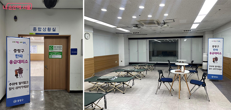 중랑구청(지하 1층) 한파 대피공간 조성 및 난방용품 비치(침대, 담요, 의자 등)