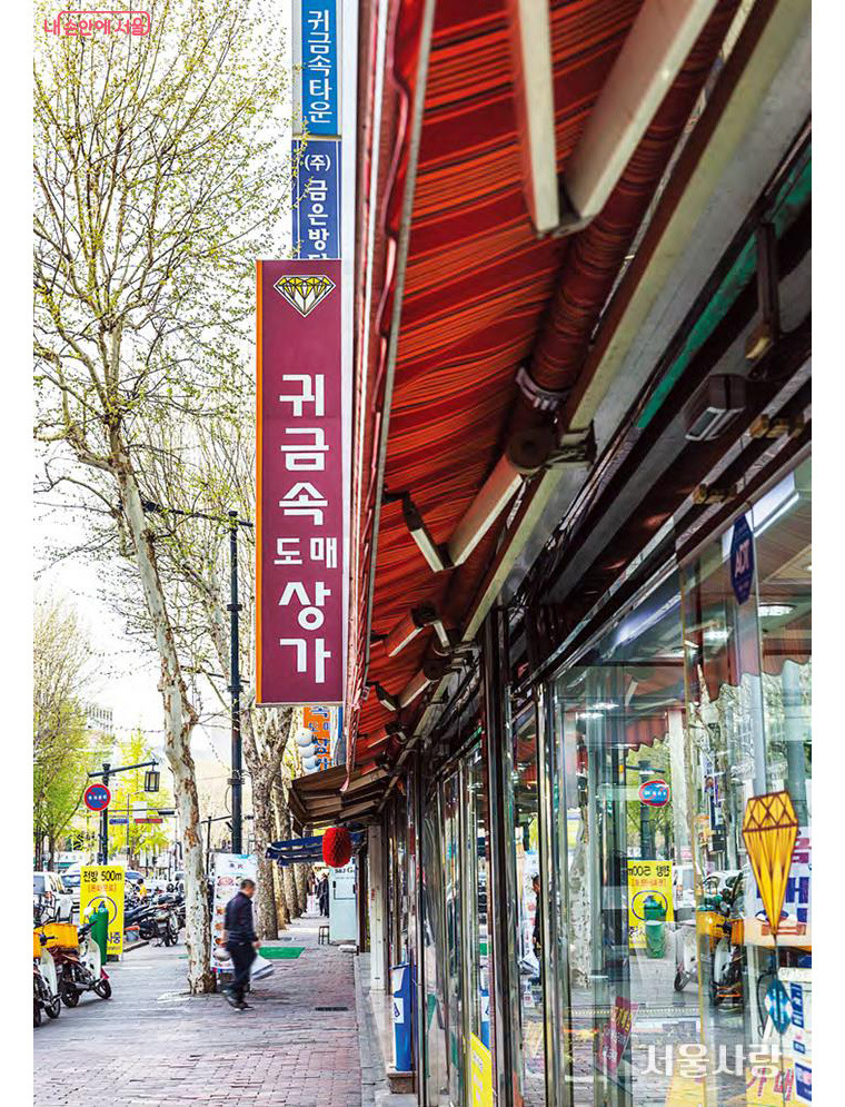 그렇게 해서 이 지역은 결혼식 예물이나 돌반지를 구하려는 사람들부터 시작해서 투자를 위해 금괴를 사려는 사람들까지 귀금속을 원하는 한국인들이라면 모두 모여드는 특색 있는 장소로 자리 잡았다. 최근에는 ‘금수저’, ‘은수저’라는 말이 유행하면서 백일잔치나 돌잔치에 황금으로 자그마한 수저를 만들어 선물하는 문화도 생겼다고 하니 그 발전의 모습이 확실히 눈길을 끌 만하다.